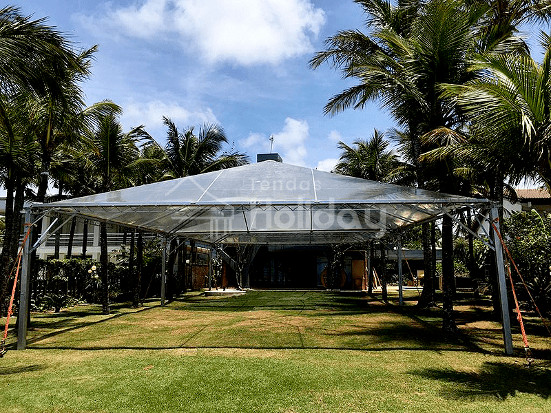 Prática e versátil, a Tenda Piramidal é utilizada para cobrir pequenas, médias ou grandes áreas em qualquer evento. -